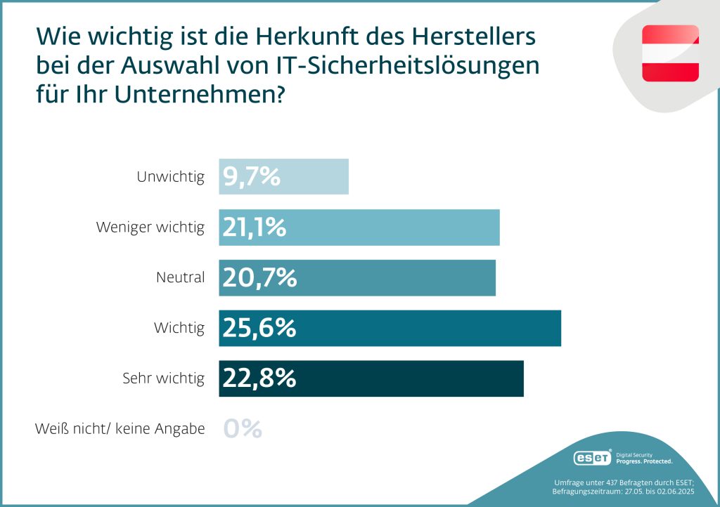 Wie die Umfrage zeigt, sind sich Österreichs Unternehmen mehrheitlich der Vorteile europäischer IT-Sicherheitslösungen bewusst: Sie stehen für Datenschutz, Rechtsstaatlichkeit und den Schutz sensibler Unternehmensdaten – im Einklang mit europäischen Werten.