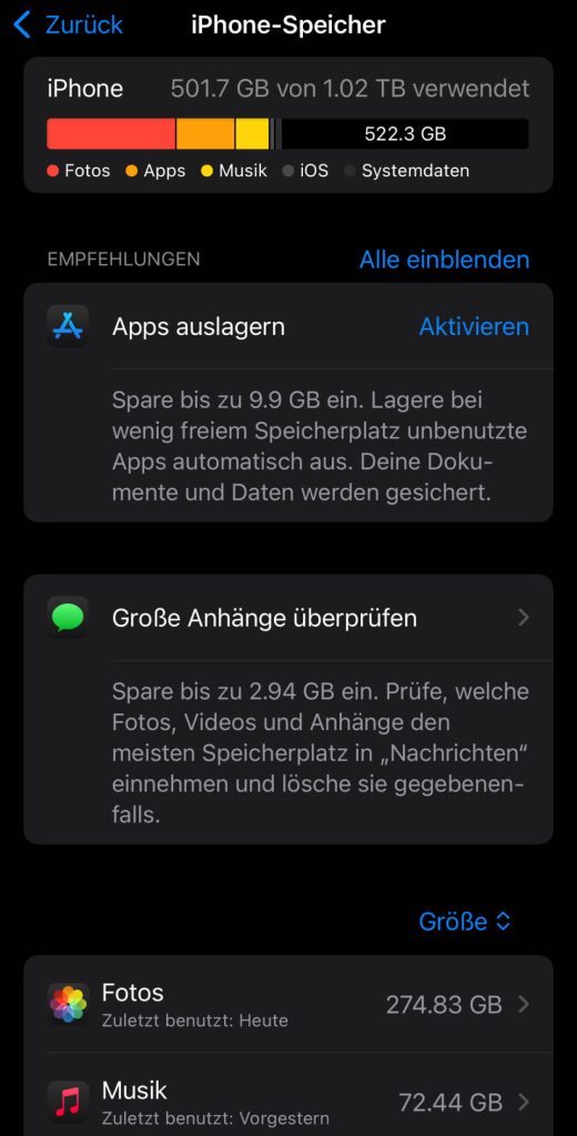 Einer der häufigsten Gründe für ein langsames Smartphone ist ein voller Speicher. Apps, Fotos, Videos und andere Daten sammeln sich im Laufe der Zeit an und belegen wertvollen Platz. Zunächst sollten Sie aber herausfinden, wo genau der Speicher verbraucht wird.